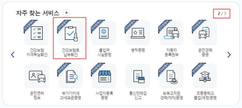 ④ 2페이지 '건강보험료 납부 확인' 버튼을 눌러줍니다.