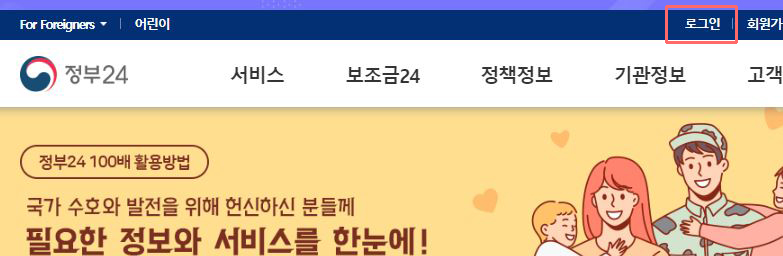 ① 정부24 홈페이지 접속 후, 로그인 메뉴로 접속합니다.
