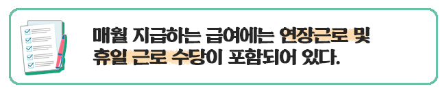 - 연장 근로 n시간, 휴일근로 n시간 대한 가산 수당 0원을 포함한 총급여가 나와있어야 하며 한 주당 12시간을 넘을 수 없다.
