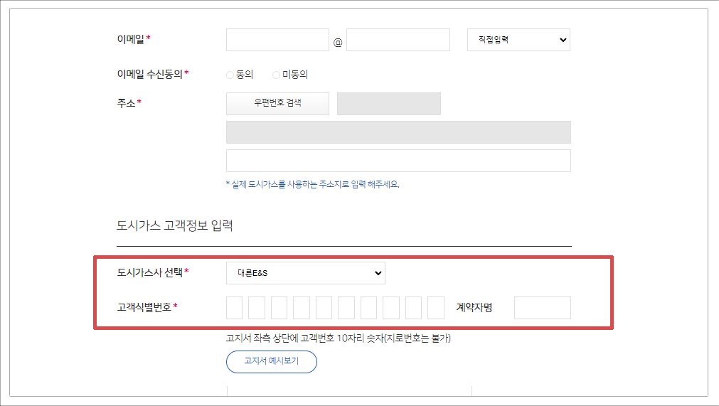 ④ 회원가입에 필요한 정보와 도시가스 고객정보 입력