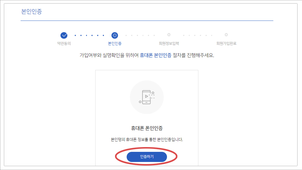③ 약관에 전체 동의 후 핸드폰 본인인증하기 (PASS앱 / 문자)